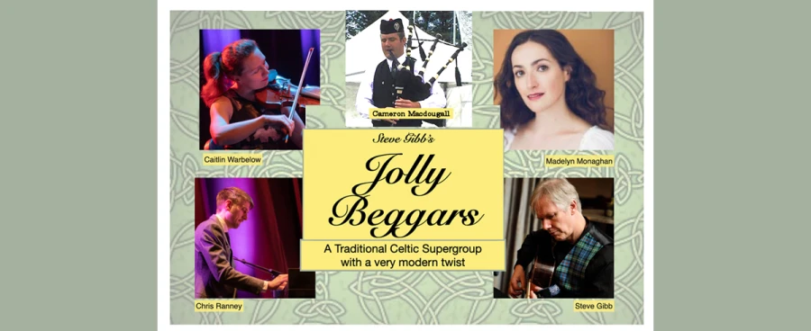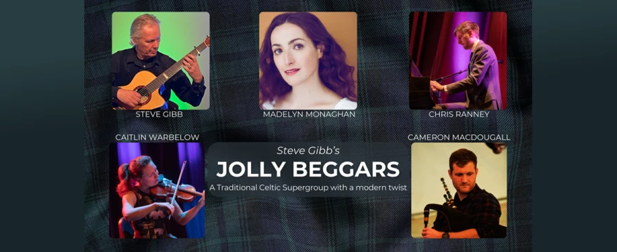 An Evening with Steve Gibb’s Jolly Beggars is Troubadour’s star-studded celebration of Celtic culture, blending Robert Burns Night elegance with St. Patrick’s Day exuberance. This international Celtic supergroup features guitar virtuoso Steve Gibb (London Symphony, Broadway’s “Jersey Boys”); Irish-American vocalist Madelyn Monaghan, who bridges Celtic tradition and global dance music; All-Ireland Fiddle Champion Caitlin Warbelow of Broadway’s “Come From Away”; dynamic pianist and button accordionist Chris Ranney; and award-winning, globetrotting piper Cameron Macdougall, veteran of Celtic Connections, Interceltique Festival de Lorient, and World Pipe Band Championships. Together they launch their national tour at “Morristown’s Listening Room.”