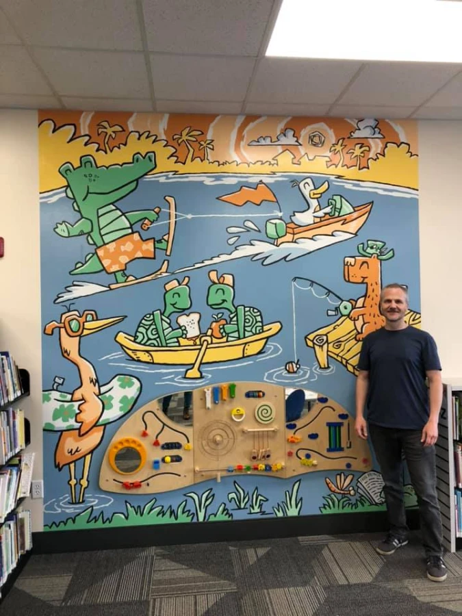 When you arrive, you can choose between a dog or cat design. David will provide the pre-painted linework of a whimsical space-themed pet on a 9” x 12” canvas board. And you’ll take it from there, bringing it to life with your own colors, textures, and creative touches. You can even customize it to resemble your own furry friend! David will also be on hand to offer instruction or guidance as much or as little as you’d like.