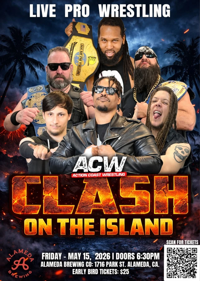 The Stars of Action Coast Wrestling return to Alameda Brewing with "CLASH ON THE ISLAND", a night of celebration! With 4 big title matches. Join us for an action-packed night of drama, excitement, and fun!!!