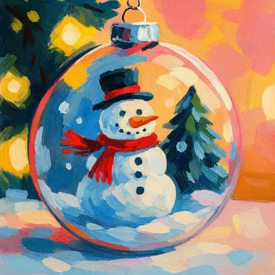 ⛄ “Snowman in the Globe” – a whimsical ornament scene with painterly flair
