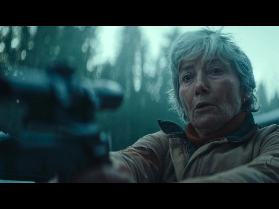 She plays a Minnesota widow, a strong and good-natured woman who recently lost her husband. Together, they ran a fishing supply store and loved ice fishing, often venturing out to remote frozen lakes to set up their ice shelters. As the film begins, Thompson’s character is on a mission to scatter her late husband's ashes at one such lake — the spot of their first date. But she gets lost along the way, leading her to a strange and ominous house that sets the stage for everything to come. Outside she finds a stranger chopping wood with a bizarre splash of blood on the snow. Thompson tries to make small talk and inquire about directions, only to find herself on the verge of something much darker.
