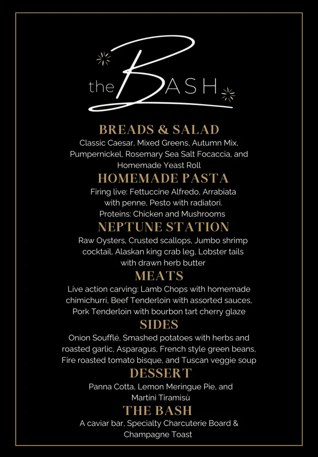 The Bash is a New Year's Eve celebration unlike any other. For those seeking unparalleled fireworks, thoughtfully elevated banquet offerings in the gem of Hatley Pointe—Smoke & Timber—and a champagne toast shared among new friends and our Hatley family, this night promises joy at every turn. Enjoy an intimate jazz entourage playing timeless classics and modern favorites, providing the perfect soundtrack for celebration.