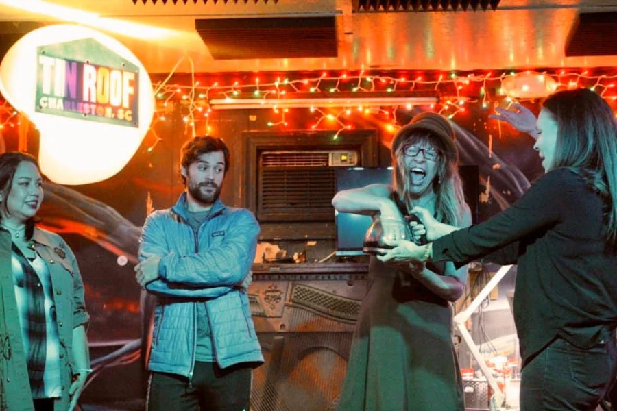 eXcess boXes is a fast paced, character driven, all women cast comedy show. Ok, sounds fun, but what’s the catch? The catch is that it’s also an excuse to do epic giveaways! Each show we partner with local makers to give the audience a taste of what Charlestonians are capable of. The Sketch Comedy show is a Trojan Horse for us to give big ticket items away to the audience. In our last two shows we were able to give away local goods totaling over $1,000 retail value. Items included a backpack from J. Stark, candles from Candlefish, Cards from Ink Meets Paper, Italian Loafers from Thelma, Original artwork by Kate Ritchie, a Coffee Package from Sightsee, and more!