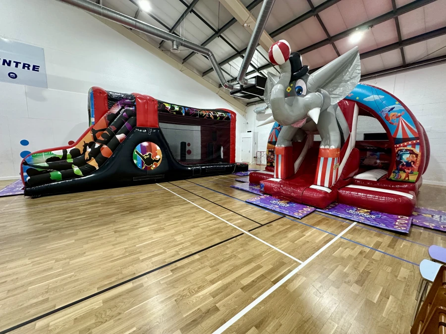 We’ve transformed a full-size sports hall into a safe, fully supervised inflatable adventure zone — perfect for burning energy, racing friends and enjoying active family fun.