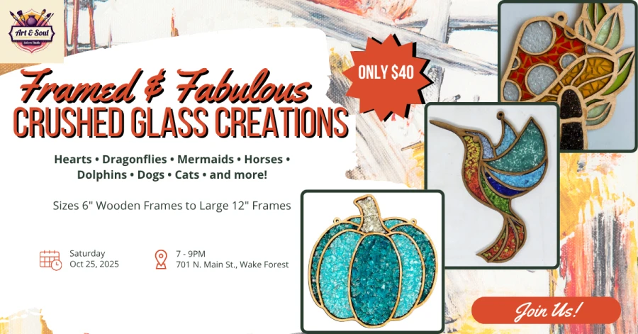 📍 Location: MK Creative Arts Studio 701 N. Main Street, Wake Forest, NC (Beside Pelican’s Snoballs)