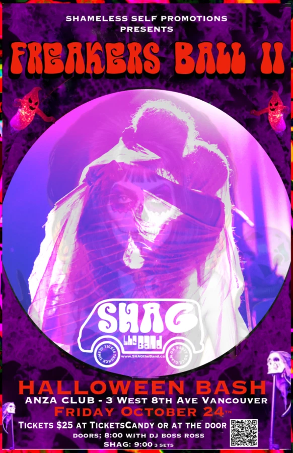 Shameless Self Promotions is excited to announce FREAKERS’ BALL II with SHAG the Band and special guest DJ Boss Ross . Doors at 8:00 pm. SHAG at 9:00 for three sets. Intermission costume contest, DJ and give aways.