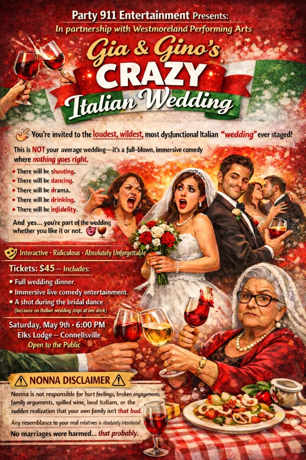 This immersive, laugh-out-loud experience brings all the chaos, drama, and comedy of a traditional Italian wedding to life. From the ceremony and wedding dinner to the first dance and bridal dance, nothing goes quite as planned. Expect outrageous side stories, heated arguments, secret affairs, and plenty of surprises along the way.