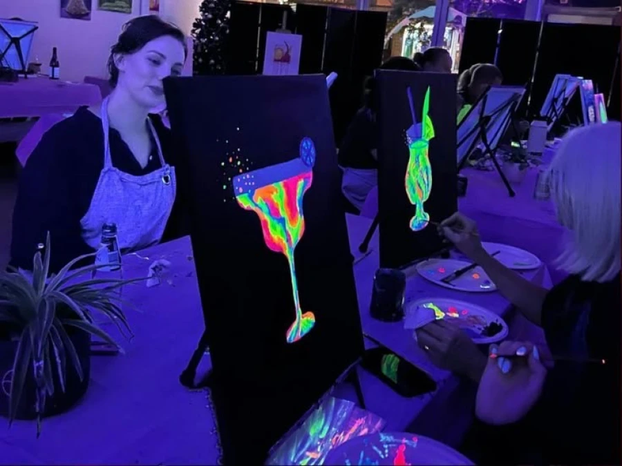 Get ready for a painting experience like no other! Join us for Glow-in-the-Dark Painting Night, where your creativity comes to life under black lights. Using vibrant neon paints, you’ll create a masterpiece that glows in the dark, making for a fun and unforgettable night.