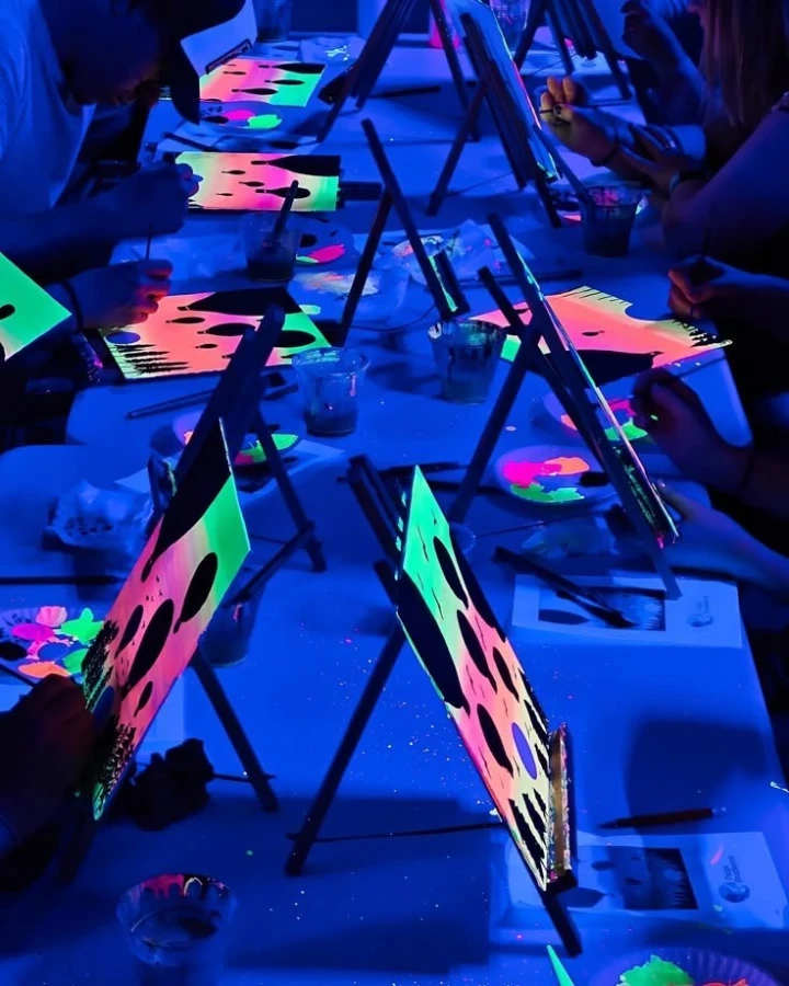 ✨ All supplies provided – including glow paints, canvas, and brushes