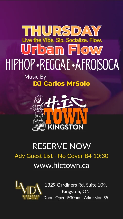 Join us every Thursday starting January 1, 2026, for Kingston’s premier Urban music social at The Loft inside La Vida Bistrobar & Social (@lavidabistrobarandsocial). Kingston's only weeknight event dedicated to HIP HOP Reggae Afrobeats and Soca.