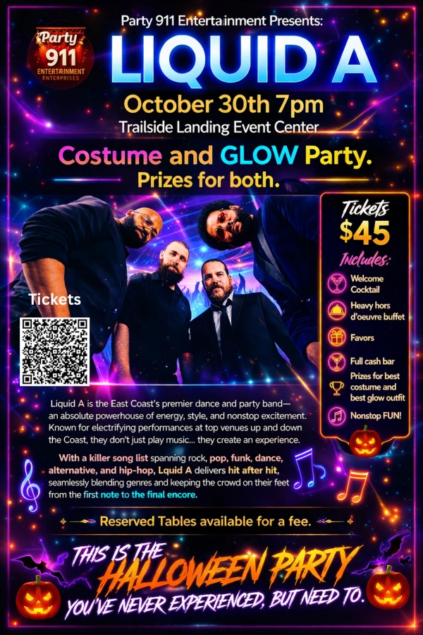 Liquid A is the East Coastโs premier dance and party bandโan absolute powerhouse of energy, style, and nonstop excitement. Known for electrifying performances at top venues up and down the coast, they donโt just play musicโฆ they create an experience.
