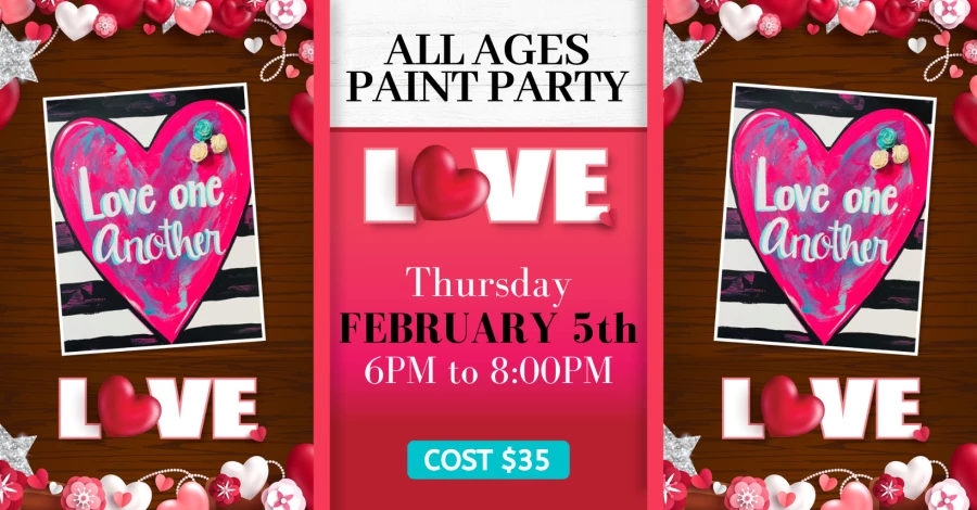 Join us for a cozy and creative evening, as we paint this cute Love One Another sign Whether you’re a first-time painter or a seasoned pro, this event is all about relaxing, laughing, and letting your creativity flow.