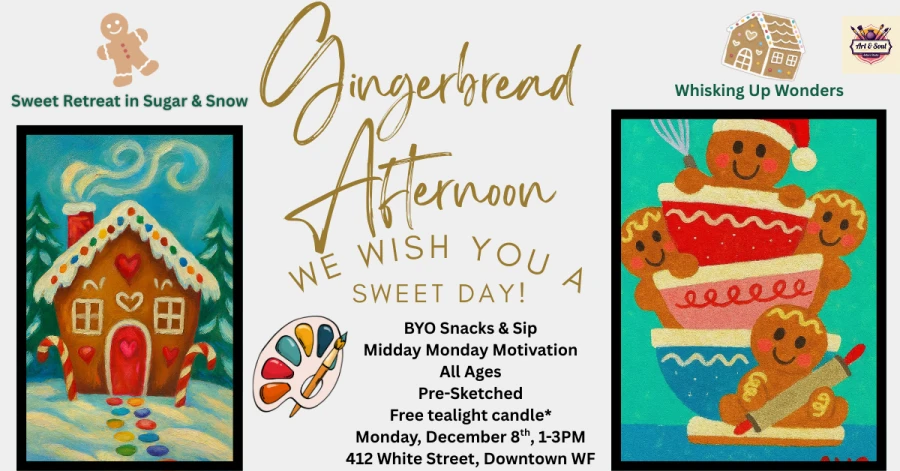 #GingerbreadAfternoon #WhiskingUpWonders #SweetRetreatInSugarAndSnow #ArtAndSoulOriginals #WakeForestCreates #SipAndSparkle #holidaypainting #thingstododowntown #paintparty #MakeItMondays #MondayMotivation #wakeforest #downtownwf #raleigh #rolesville #youngsville #franklinton #apex #cary #wilson #kenly #wendell #zebulon #bunn #louisburg #knightdale #art #artclass #painting #DIY #handmadegifts #ladiesnight