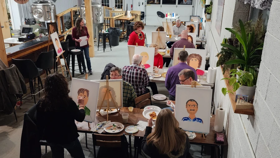Comes with canvas and supplies for each, professional artist guidance, and an appetizer to share (shrimp basket, philly egg rolls, or pretzel sticks), specialty pizza to share (Strawberry Basil, Meat Lovers, Dill Pickle), along with drinks ( each get a water/soda/tea and a beer, wine, cocktail, or mocktail) and homemade dessert for each. Other options available. Just ask!