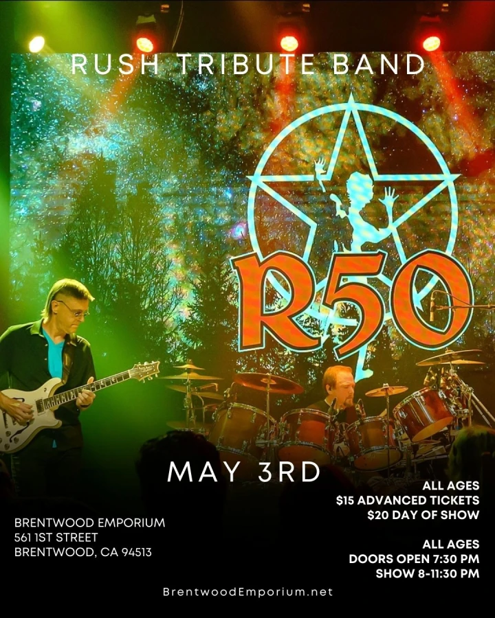 R50 (a tribute to Rush) returns to Brentwood Emporium on Saturday, May 3rd for a night of live Rush music. Big hits, deep album cuts, and all eras will be represented!