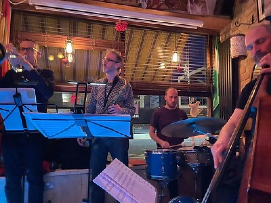 Uphill Game is an absolutely cracking contemporary jazz quartet led by double-bassist Riaan Vosloo, and features the superb drummer Matt Brown plus the legendary Get The Blessing horn section of Jake McMurchie on saxophone and Pete Judge on flugelhorn. Riaan's choice of tunes, including his own beguiling originals, is always a delight and a surprise, and the band's obvious synergy belies their infrequent get-togethers.