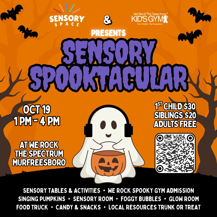 We've teamed up with We Rock The Spectrum - Murfreesboro to bring you a sensory-friendly Halloween event for children of all abilities to enjoy the magic of Halloween. π§‘